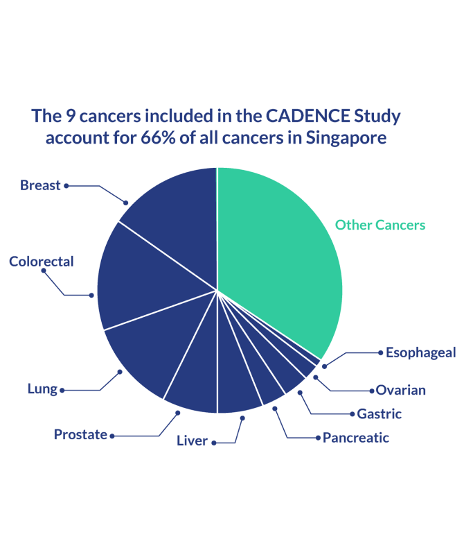 In collaboration with key clinical experts and institutions in Singapore, we are embarking on the CADENCE (CAncer Detected Early caN be CurEd) study to develop a blood-based multi-cancer screening test (MCST) to detect the nine most prevalent cancers in Singapore: lung, breast, colorectal, liver, stomach, esophageal, ovarian, pancreatic, and prostate.
